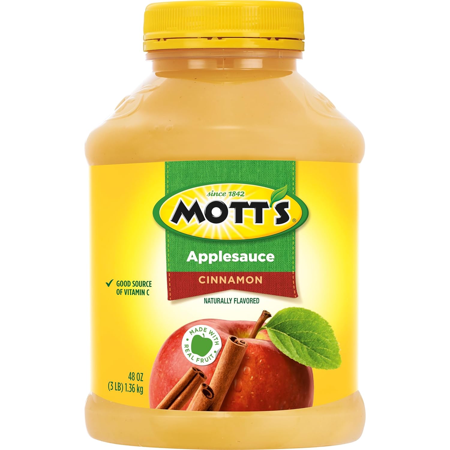 The original, delicious treat, Mott's Cinnamon Applesauce is the perfect snack or meal companion. It's a good source of Vitamin C and free of cholesterol. Bringing the best of the orchard to your household, Mott's helps families enjoy delicious fruit goodness every day. The apple juice and sauce brand is dedicated to giving moms easy ways to help their families be their very best. Mott's has a strong heritage and has been the trusted apple juice and sauce brand since 1842. Mott's hold the apples to a very high standard, that's why the products pack lots of delicious fruit flavor from ripe apples into every serving. Enjoy Mott's in a variety of pack types including pouches, cups, jugs, juice boxes and jars; so whether you're home with your family or on-the-go and in need of a snack, Mott's has a product for you. We also offer an extensive suite of flavors so you can add variety in your snacking. Mott's 100% Apple juice comes in refreshing flavors like Apple Cherry, Apple White Grape and Fruit Punch while sauce has options like Cinnamon and Mixed Berry so you'll be sure to find something that satisfies your taste buds. You won't find any artificial flavors in Mott's products, so you can feel good about making healthy choices.